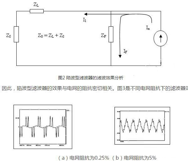 而流入濾波器的諧波電流的大小取決于電網(wǎng)阻抗與濾波器的阻抗ZF的比值,這個比值越大,濾波器的濾波效果越好。