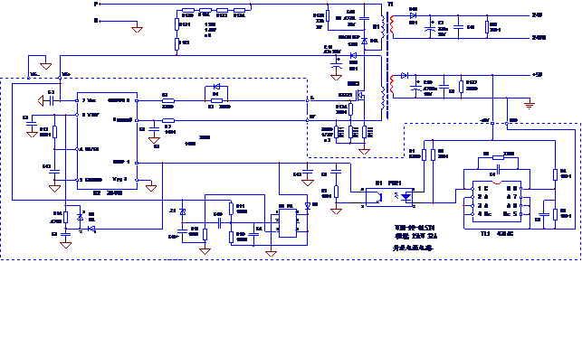 艾米克變頻器產(chǎn)品,其開關(guān)電源電路均采用將開關(guān)管、開關(guān)變壓器及二次側(cè)整流電路以外的振蕩與穩(wěn)壓電路,集中于一個(gè)振蕩小板上的方法,以達(dá)到精簡電路,縮小電路板體積的目的。這樣的振蕩小板,如圖1所示,其上集成以了以284X振蕩芯片、光耦合器及電壓基準(zhǔn)源電路為核心器件的振蕩與穩(wěn)壓電路,若以光耦合器的輸入側(cè)、輸出側(cè)電路來劃分,則可分為輸出電壓采樣信號處理電路和振蕩電路兩個(gè)部分。